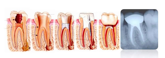 La endodoncia o desvitalización consiste en eliminar el tejido que hay en el interior de la raíz del diente cuando este se ha contaminado por una caries, un traumatismo, etc. y rellenar los conductos de las raíces con gutapercha. Posteriormente, habrá que reconstruir el diente y, en la mayoría de los casos, colocar una corona o funda.