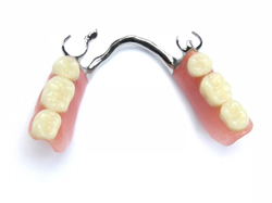 Un esquelético es una prótesis removible con estructura de metal que se apoya en los dientes naturales que quedan en la boca.